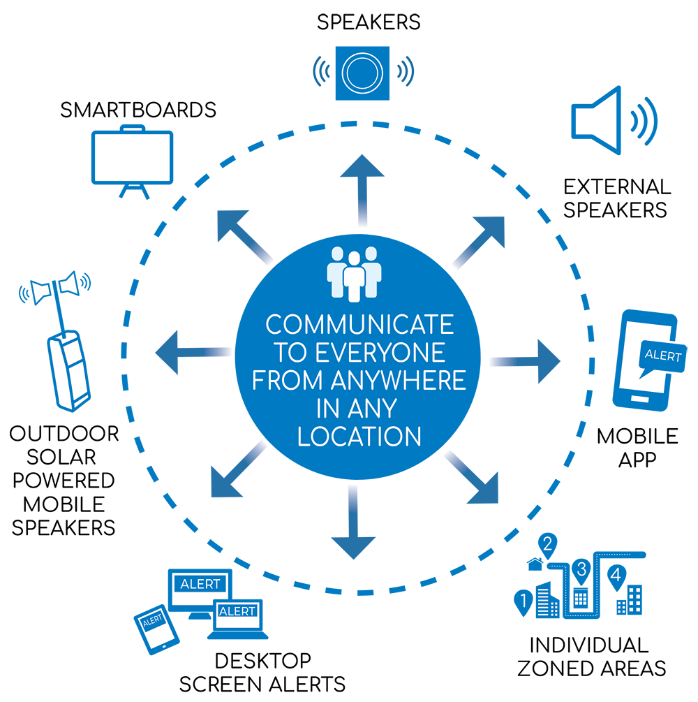 Audiebant makes sure your message reaches everyone, everywhere, exactly when they need to hear it. Designed for large sites like schools, campuses and workplaces, the mass communication system delivers instant, clear audio across multiple zones - because when timing matters, so does clarity. Easy to use, endlessly scalable and built for real-world environments, Audiebant keeps communication bright, focused and simple.