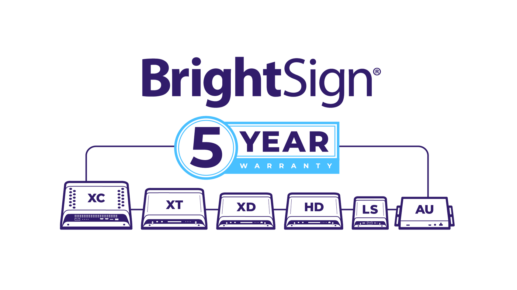 Starting January 1, 2025*, all newly purchased and registered BrightSign Series 5 and beyond media players now come with a standard 5-year warranty - reinforcing the quality and durability of BrightSign’s digital signage solutions.
