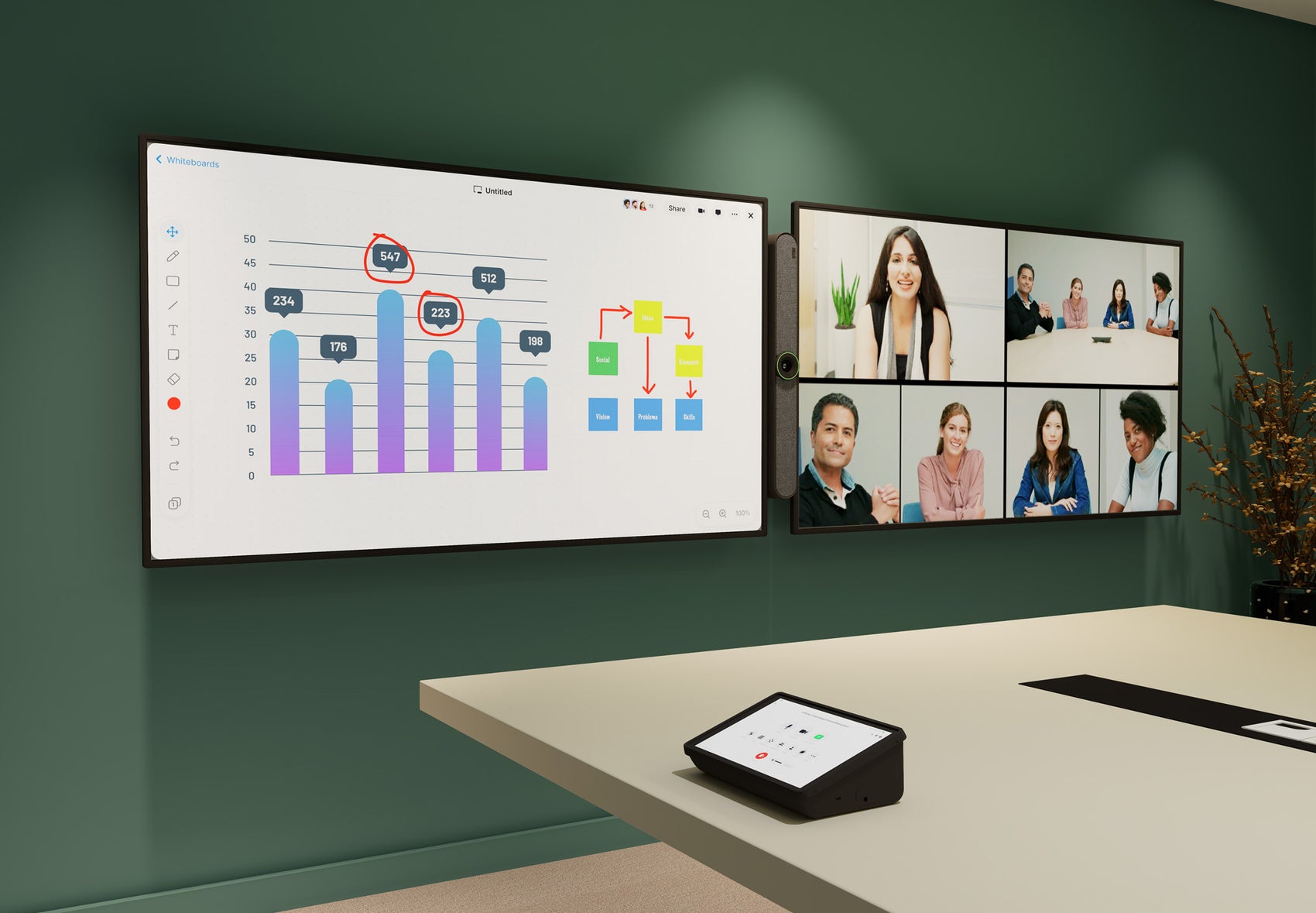 Need to level up a space? DTEN Vue Pro adds AI-powered cameras that give you multi-angle, professional-quality video, while DTEN Bar Small Room Kit and Mate controllers (PoE and WiFi) provide easy room control and high-performance audio and video in compact, affordable packages. Perfect for upgrading smaller meeting spaces without overcomplicating the tech.