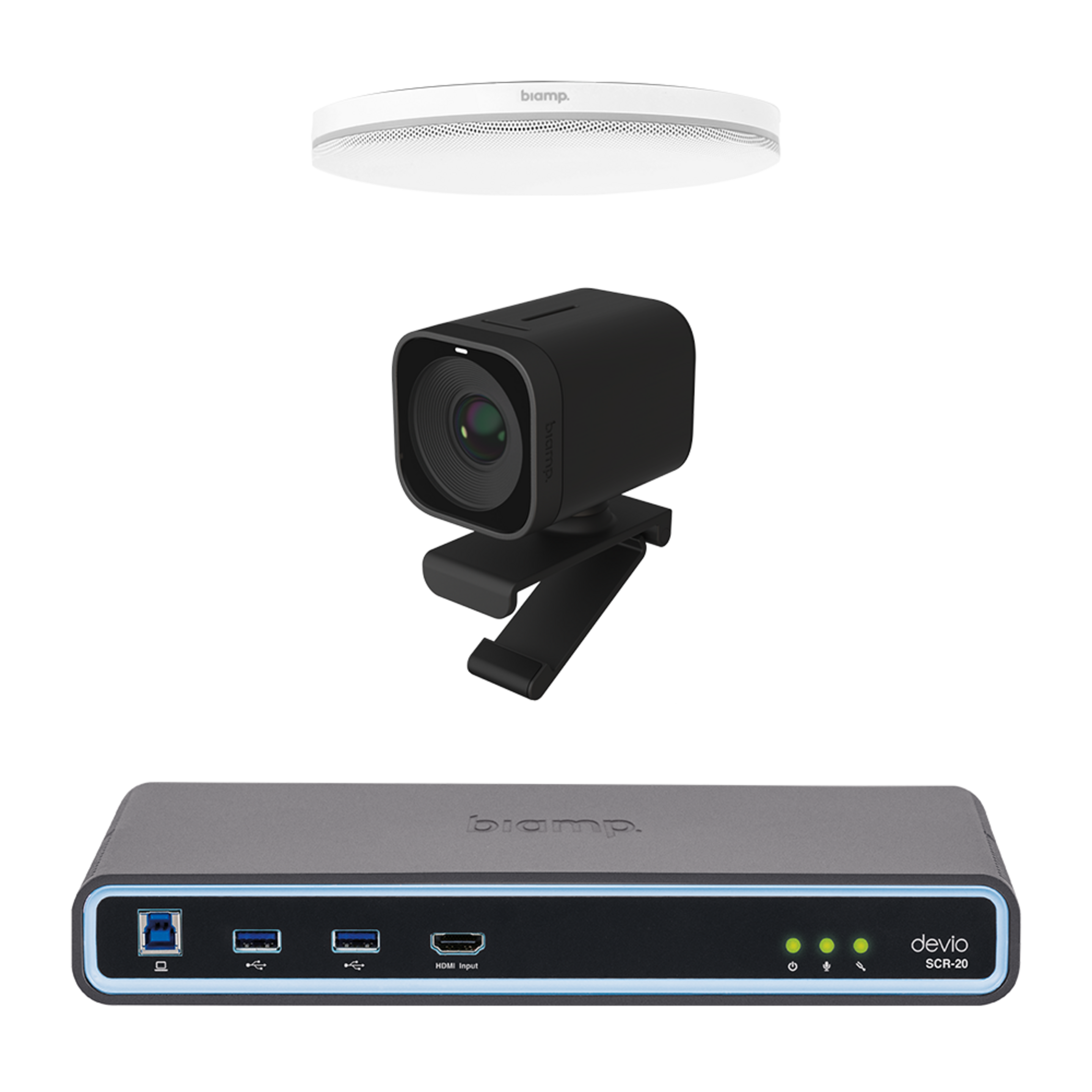 Feature | Devio SCR-20 Conferencing Hub | Vidi 250 Conferencing Camera | Parlé TCM-XEX Ceiling Microphone |