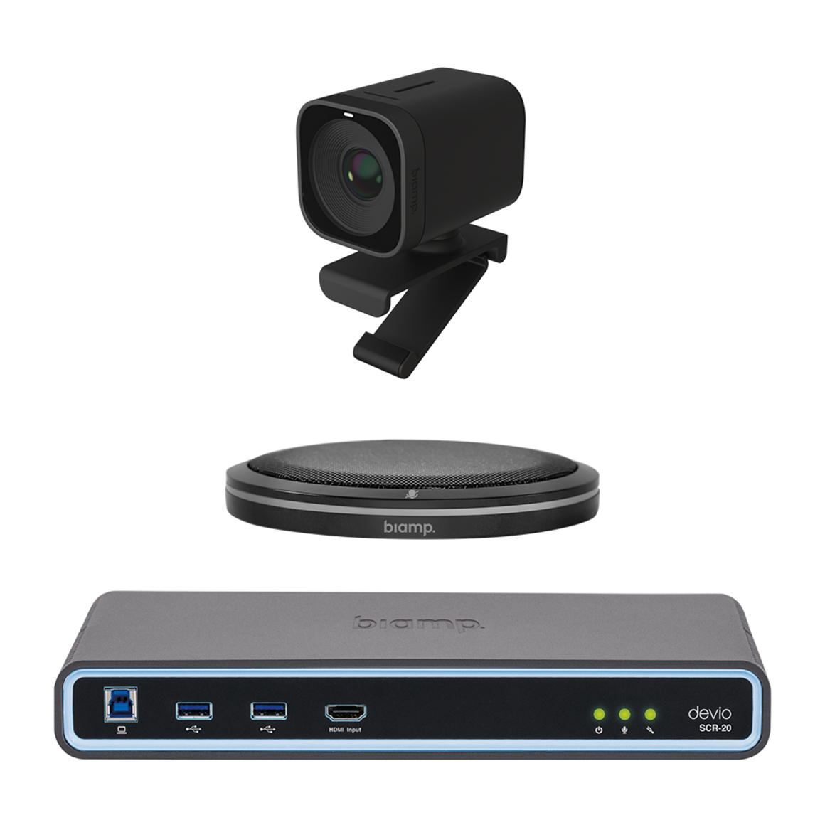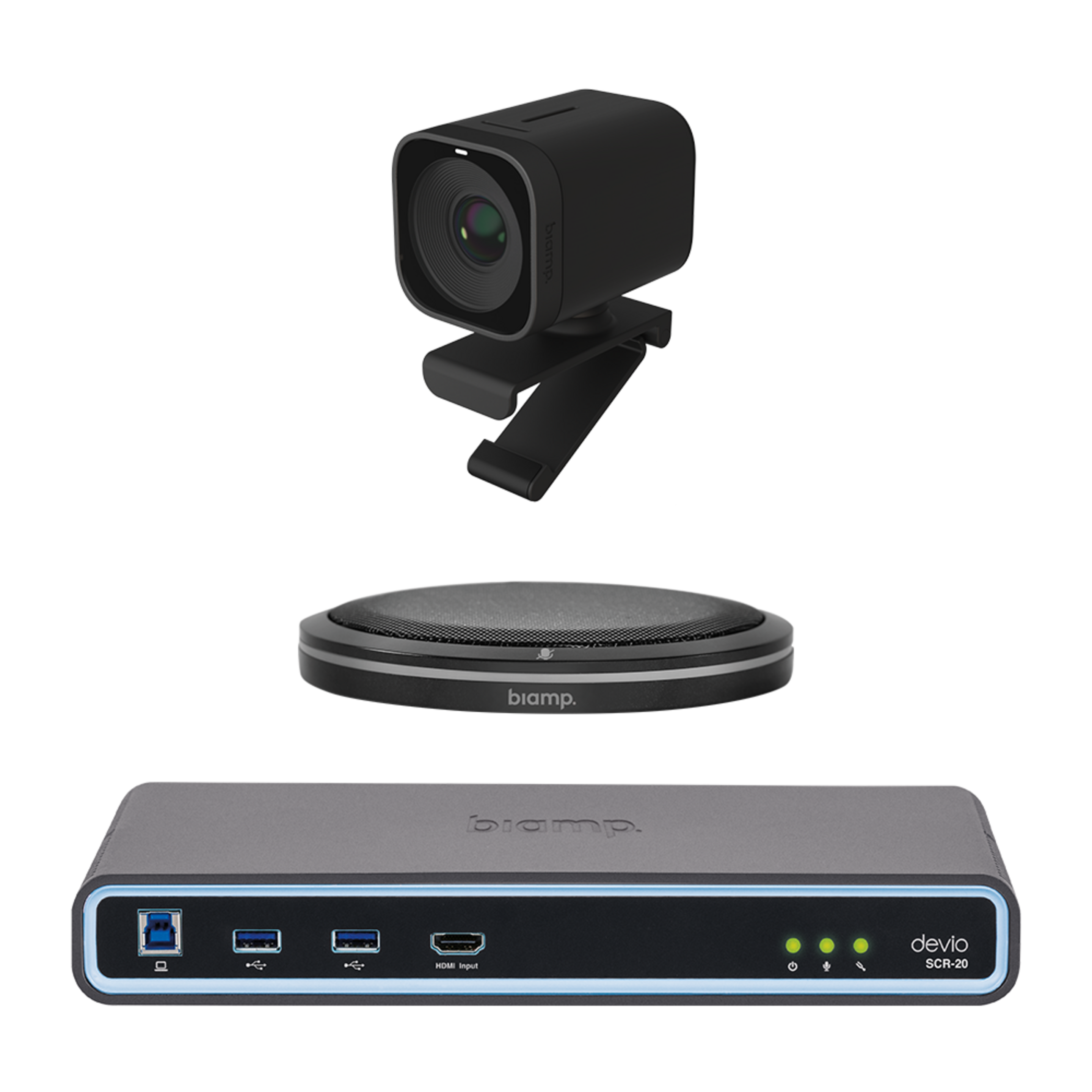 The Biamp MRB-S-SCR20-TX is an all-in-one video conferencing solution designed to deliver high-quality audiovisual performance in huddle rooms and small conference spaces. Certified for Microsoft Teams Rooms, this bundle facilitates a Bring Your Own Device (BYOD) approach, ensuring seamless integration with industry-leading conferencing platforms, including Microsoft Teams, Zoom, BlueJeans, and Google Meet.