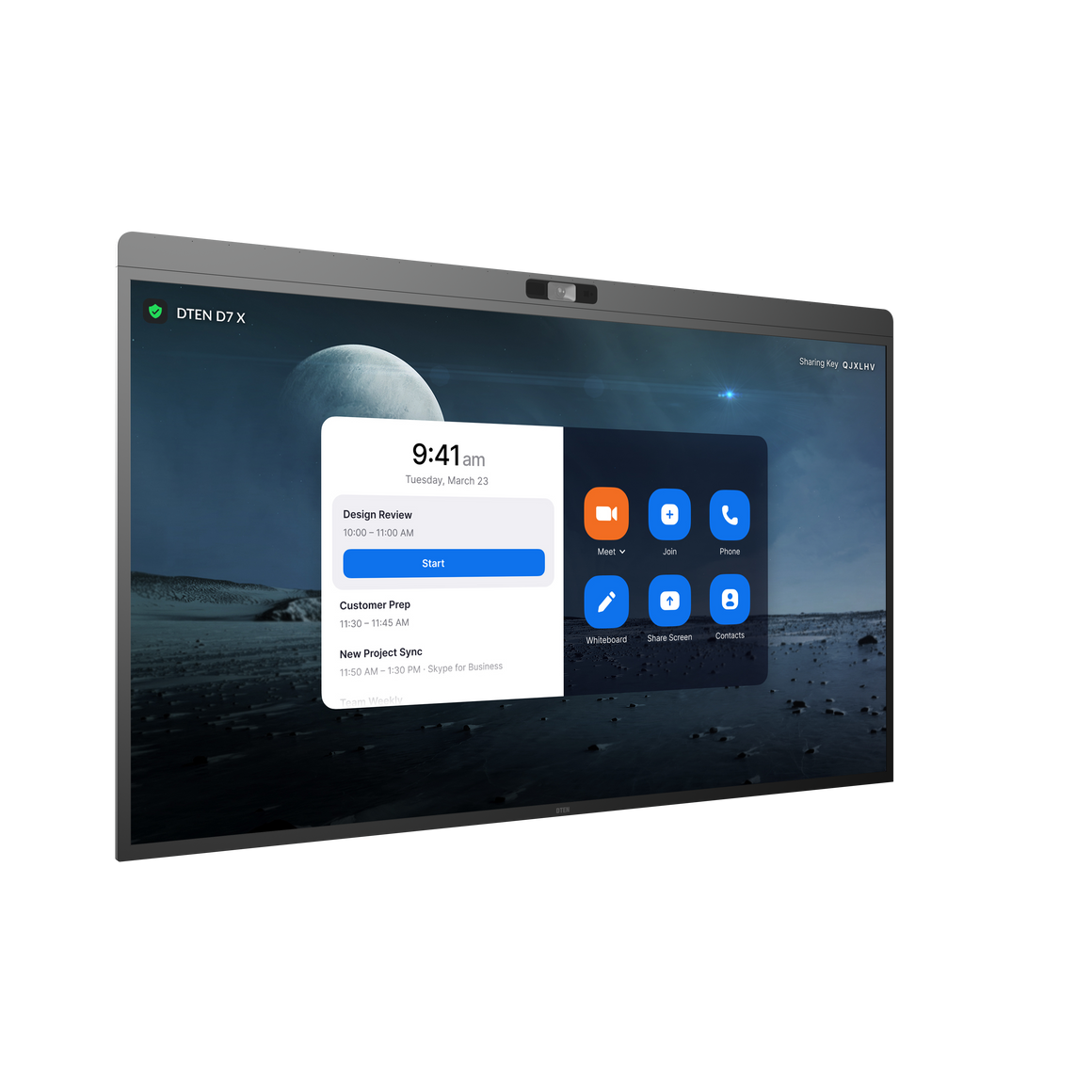 The DTEN D7X Windows Edition is the ultimate choice for hybrid meetings, offering advanced AI features, enhanced performance, and intuitive IT management. Certified for Zoom Rooms®, it ensures seamless compatibility with one of the leading collaboration platforms, making it ideal for modern professional spaces. With the addition of the optional DTEN Vue Pro, users can enhance meeting clarity and create more immersive, natural-feeling hybrid experiences.
