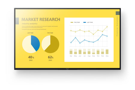- Simple Setup and Customisation: Pro Settings allow customisation to suit business environments, enabling scheduling, input source selection, and power settings.