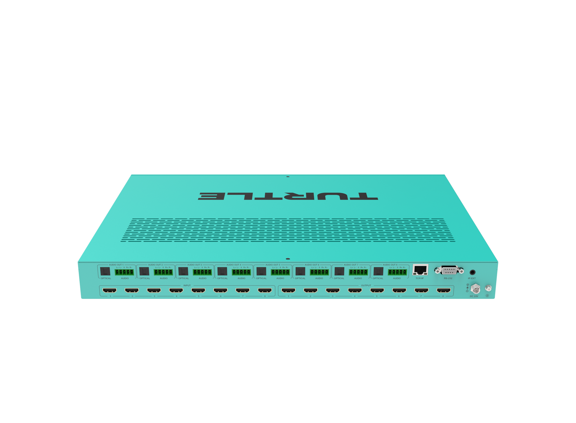 The Turtle 8x8 Video Wall (TAV-MX88VW) is a professional-grade all-in-one 4K60 4:4:4 video wall, matrix switcher, and multiview processor. With 8 HDMI 2.0 inputs and 8 HDMI outputs, it supports flexible video wall configurations, 8x8 matrix routing, and dual independent multiview outputs—making it ideal for live events, command centres, and public displays. Built with a rugged all-metal Turtle Aqua chassis, this powerful processor delivers seamless switching, audio embedding/de-embedding, advanced EDID, and WebGUI/API control. TAA compliant and backed by a 5-year advance replacement warranty.