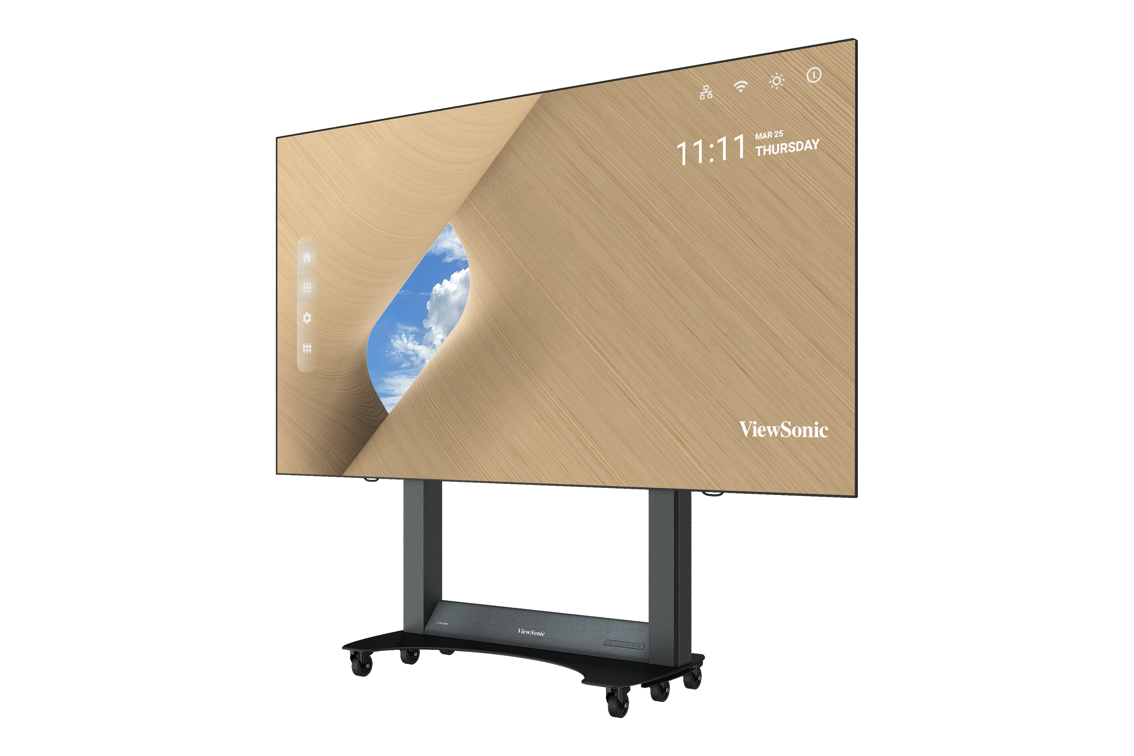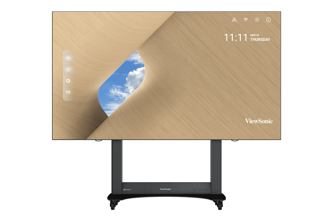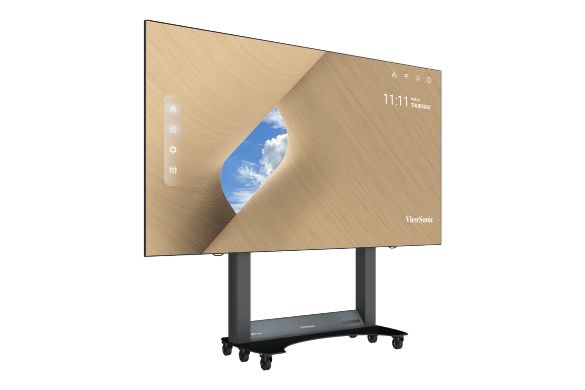 ViewSonic LDS138-151 is a foldable 138″ All-in-One direct-view LED display engineered for instant use, effortless transport, and professional presentation. Delivered as a pre-assembled kit on a mobile floor stand with an integrated control box and motorised height adjustment, it can be deployed in minutes without wall mounting. Its frameless, seamless canvas, dual 30W speakers, and durable GOB (Glue-on-Board) surface treatment—rated IP54 (front) and IK06—make it a compelling large-format solution for boardrooms, receptions, galleries, auditoriums and more.
